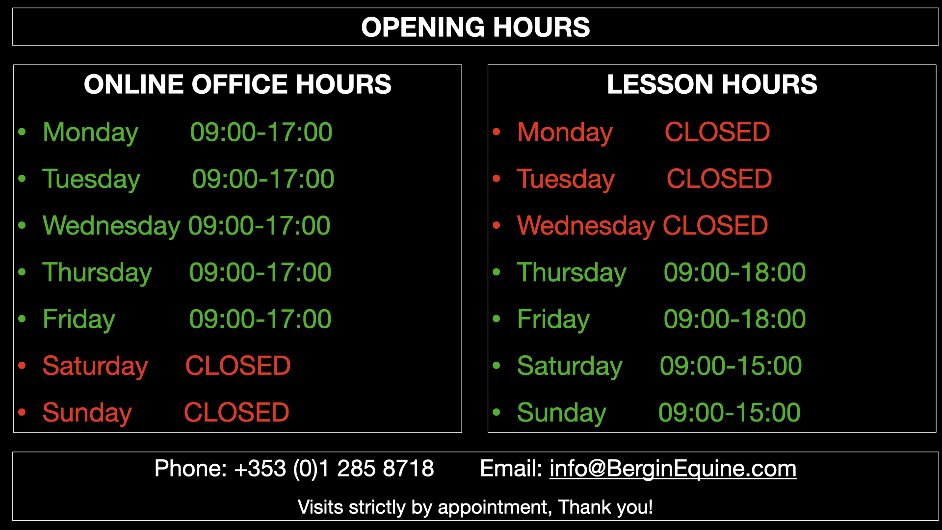 Thank you for taking the time to contact us. We will get back to you as soon as possible. You can contact us by email info@BerginEquine.com or call us on +353 1 285 8718